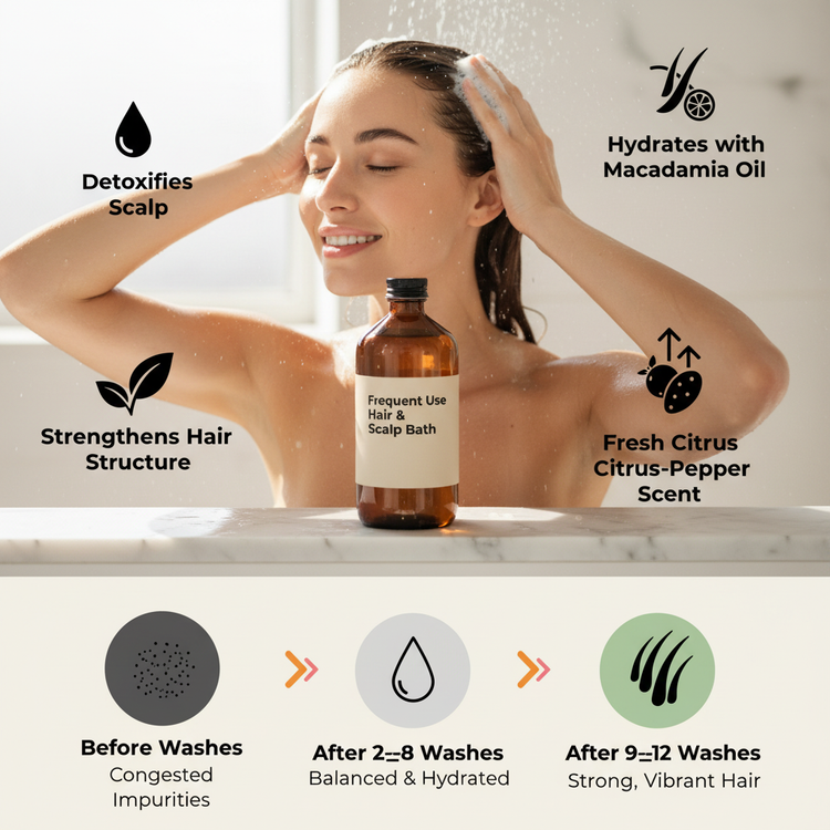 - Detoxifies scalp - Hydrates with macadamia oil - Strengthens hair structure - Fresh citrus-pepper scent